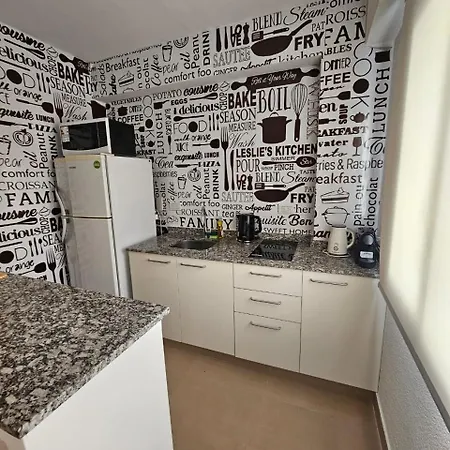 Den här lägenheten har ett komplett kök, samt bekvämligheter som luftkonditionering.